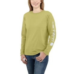 Carhartt Shirts: Women’s 103401 GB9 Green Olive Heather Loose Fit Heavy Weight Long Sleeve Graphic T-Shirt