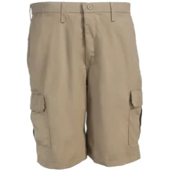 Made with a durable press finish, there’s minimal pressing or ironing required. The rugged fabric also contains a wrinkle-resistant finish for a professional look you can count on each time you wear these black shorts. Those snap closures mentioned above are on the back pockets, in addition to the cargo pockets. There’s a heavy-duty brass ratcheting zipper closure as well for a secure fit. Two superstitch slack-style front pockets, two back patch pockets with spade pocket flaps, and the two patch leg pockets with inverted center pleats are all included specifically for a person who likes to carry a lot of stuff!