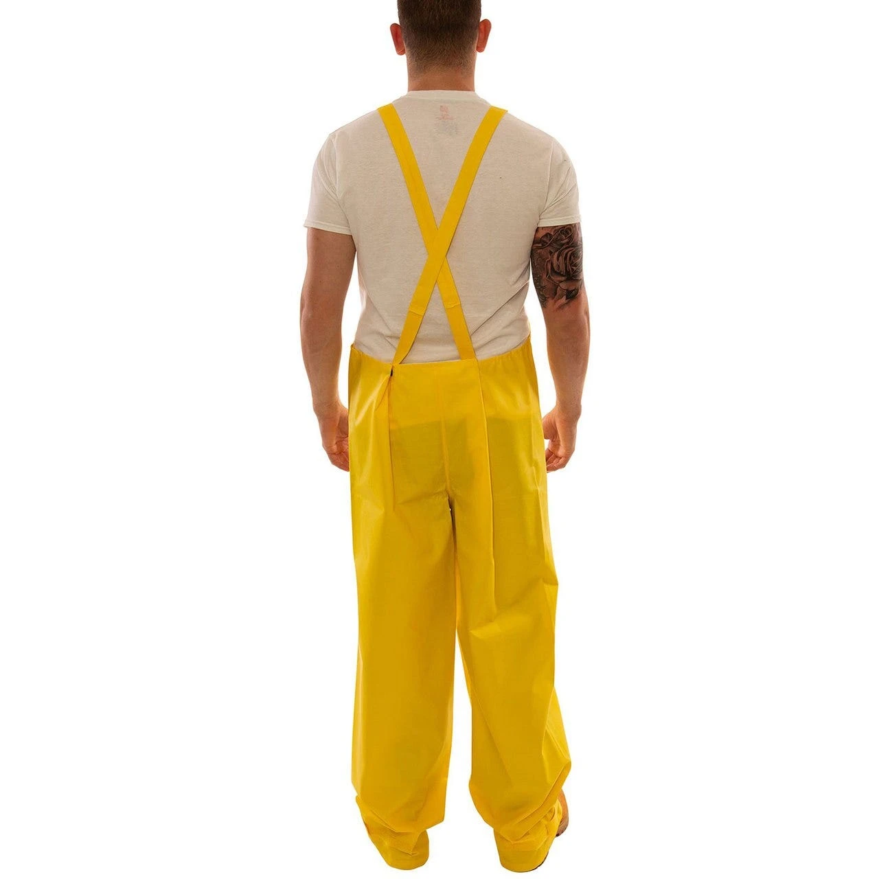 You’re due for a workwear upgrade. And not just ANY upgrade, but one that involves choosing work gear that’s 100% waterproof, flame-resistant, and chemical-resistant, too. Protect yourself thoroughly with these ~Tingley Men’s O56007 Yellow DuraScrim Waterproof PVC Overalls from Working Person’s Store. They feature double-coated PVC on polyester to provide high strength durability. The yellow DuraScrim overalls also have an extremely high tear strength, thanks to a special weave polyester scrim fabric that’s sandwiched between two layers of flame-resistant PVC coating.